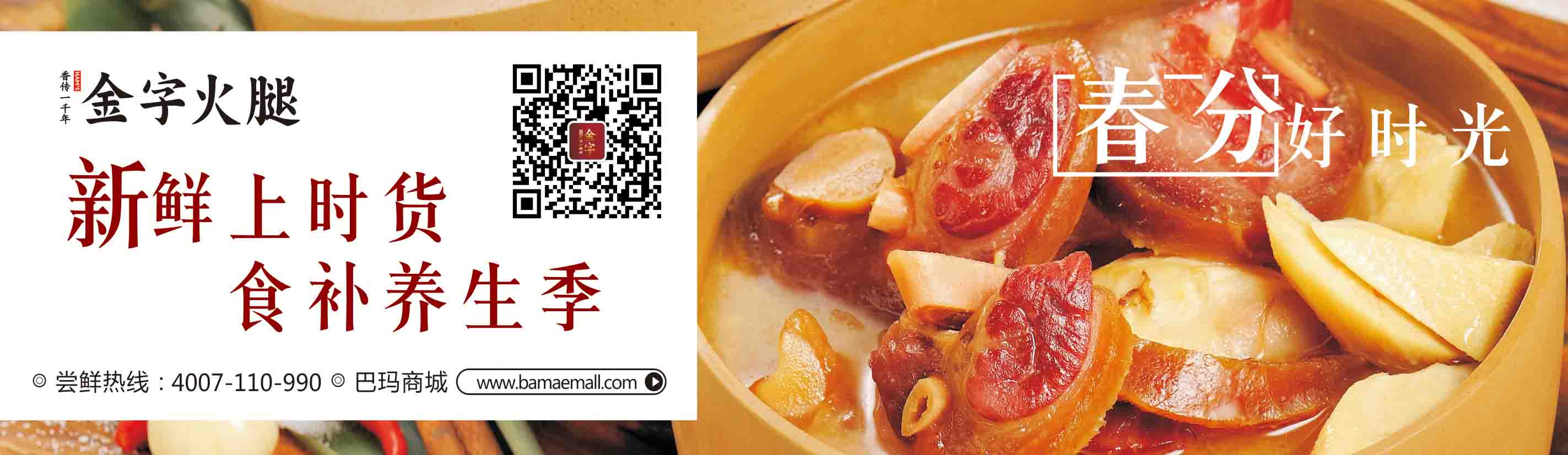 春分之后,竹筍一天一天長高,到清明時肉質(zhì)開始變老,食之漸漸無復(fù)初筍之鮮嫩口感。而待到“江南四月櫻桃紅,筍芽出土千萬叢”時,則筍期已過,再欲嘗鮮筍之美味,只好更待明年了。其實“腌篤鮮”可以引申成一種烹調(diào)的手法:火腿咸肉與新鮮肉類的合烹。類似的代表作有很多:咸肉燉蹄髈,火腿蒸鱔魚等等。金字三月新腿上架,備一條火腿,過了季節(jié),用火腿做點其他時令的“腌篤鮮”美食是一個不錯的選擇。