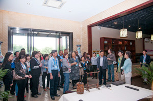 “Jinhua ham is so magical”,”This is delicious”“Good,Good”······5月9日上午,在 由金字興建的國(guó)內(nèi)唯一的中國(guó)火腿博覽館及世界火腿博覽館場(chǎng)館內(nèi)異常熱鬧,一聲聲包含著好奇、驚嘆、稱贊的英文不絕于耳。原來(lái),是來(lái)自英國(guó)、湯加、毛里求斯等20國(guó)駐華使節(jié)50余人訪問(wèn)團(tuán)在參觀考察……