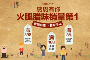 入了12月的江南,空氣中總會(huì)飄散著一股似近似遠(yuǎn)的肉香味,勾人魂魄到直咽口水。窗檐下懸掛的香腸臘肉有一種“年之將近”的即視感,因?yàn)槟蔷褪强痰焦亲永锏哪晡栋 >退銜r(shí)代再變化,“小雪腌菜,大雪腌肉”的習(xí)慣依然被懂得生活的人代代傳承著。2014年的金字天貓旗艦店雙12來(lái)了,為您準(zhǔn)備的好臘味上新,十二道臘味年前抄底價(jià)。春運(yùn)車票已經(jīng)可以買了,臘味也同樣:回家過(guò)春節(jié),你準(zhǔn)備好了沒(méi)有?
